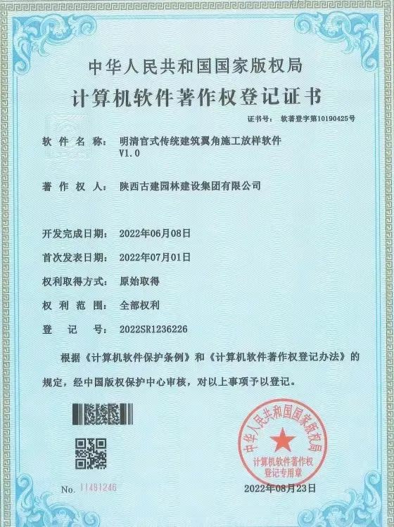【陕建古建园林】集团公司一项软件著作权获得国家版权局登记