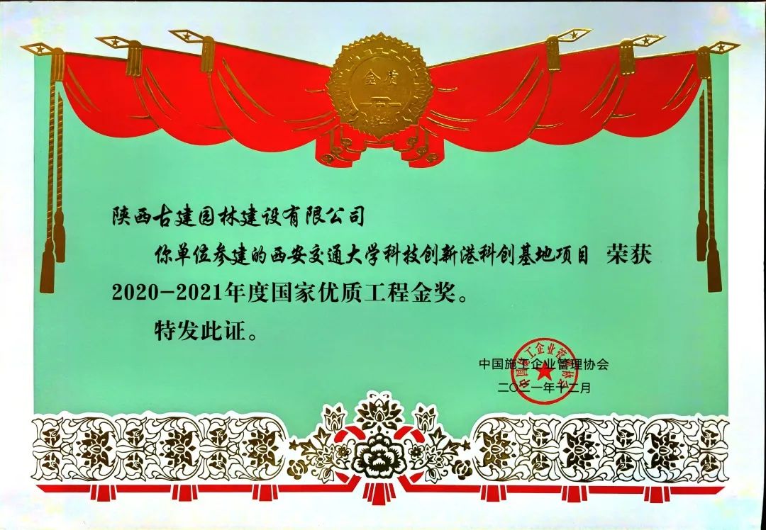 喜报!我单位参建的西安交大创新港项目荣获2020-2021年度国家优质工程金奖